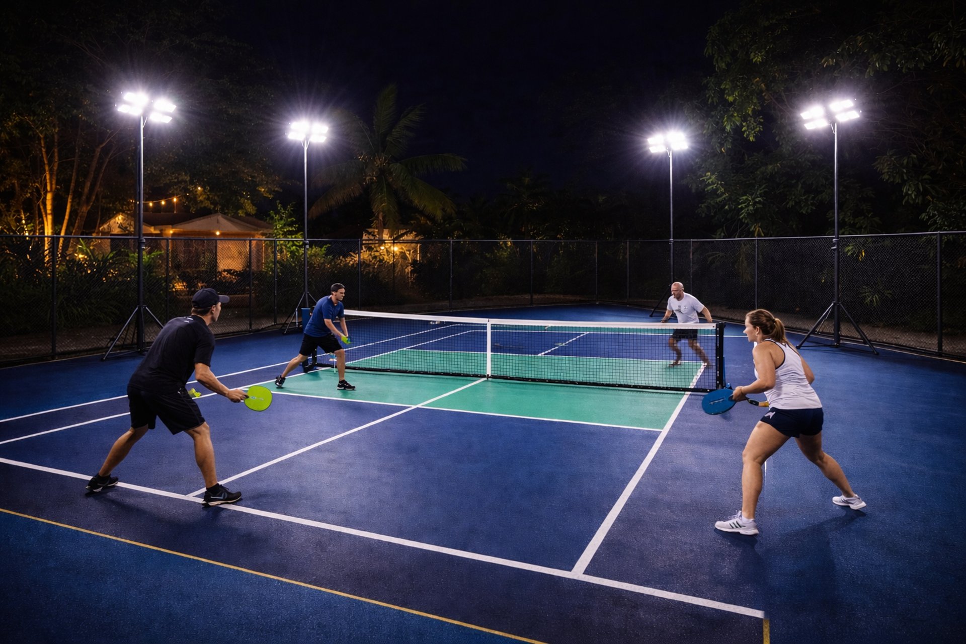 We transform ordinary spaces—driveways, parking areas, covered courts, and event venues—into fully functional pickleball courts.